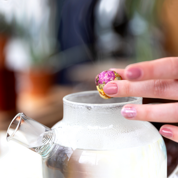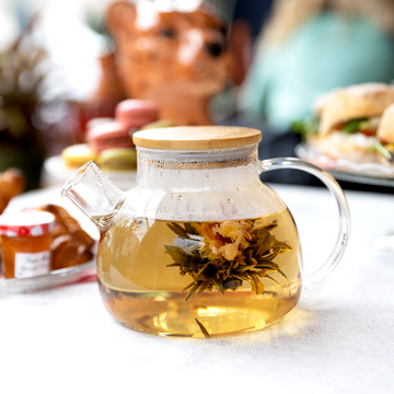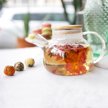 Het is belangrijk om een glazen theepot of theeglas te gebruiken. Blooming Tea Flowers zijn, naast de heerlijke smaak, visueel prachtig. In een ondoorzichtige theepot of theeglas kun je het ontvouwen van de theebloemen niet zien. Ook is het fijn als je theepot een zeef heeft, zodat de theebloemen niet mee komen bij het uitschenken. In onze webshop hebben we een glazen theepot met ingebouwde zeef speciaal voor theebloemen. Je kunt 'em hier bestellen: