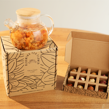 Je kunt kiezen uit twee verschillende Blooming Tea Flower kerstpakketten: